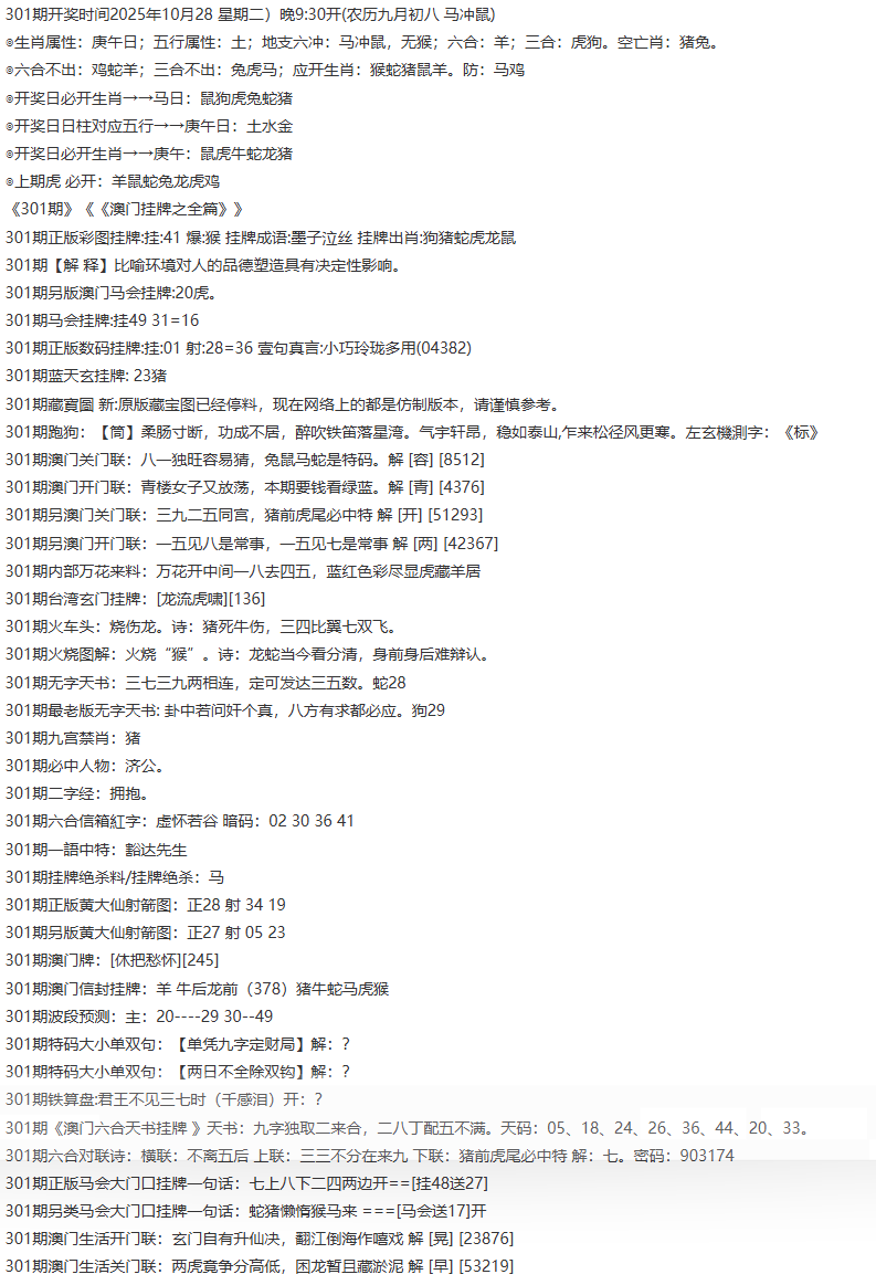 | 301期稳中⑥肖 | ||||||||||||||||||||||||||||