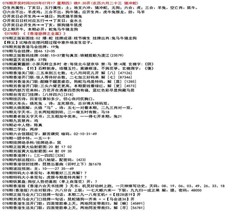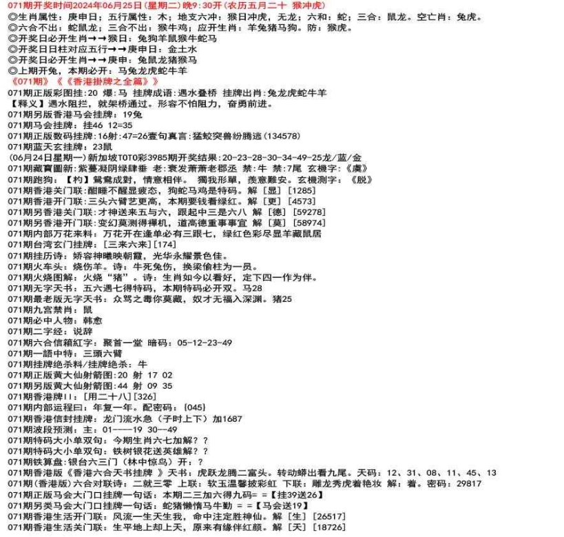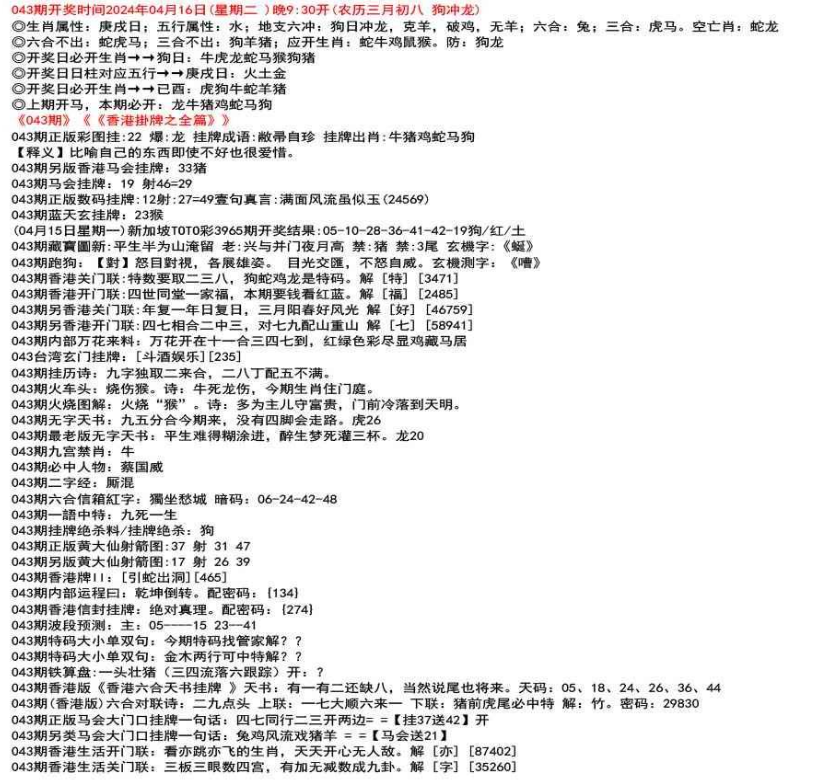 111期(香港版)六合对联诗:三三足养 上联:头在天上脚落地 下联:说是龙来假一字 解:落。密码:38729