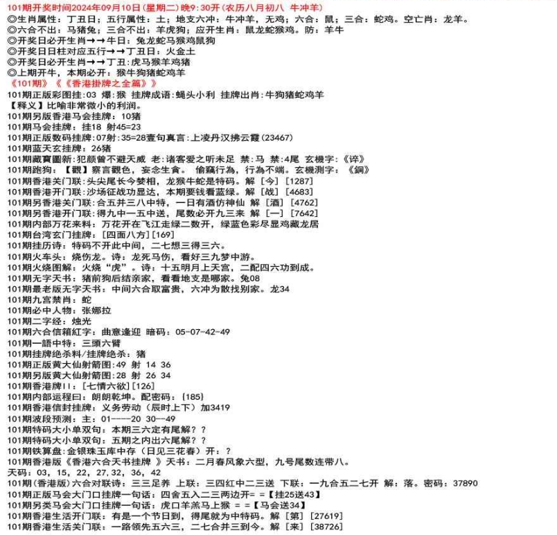111期香港版《香港六合天书挂牌 》天书:二六邪恶穿空洞,选择三九退七格。天码:03,15,39,27,09,29,49